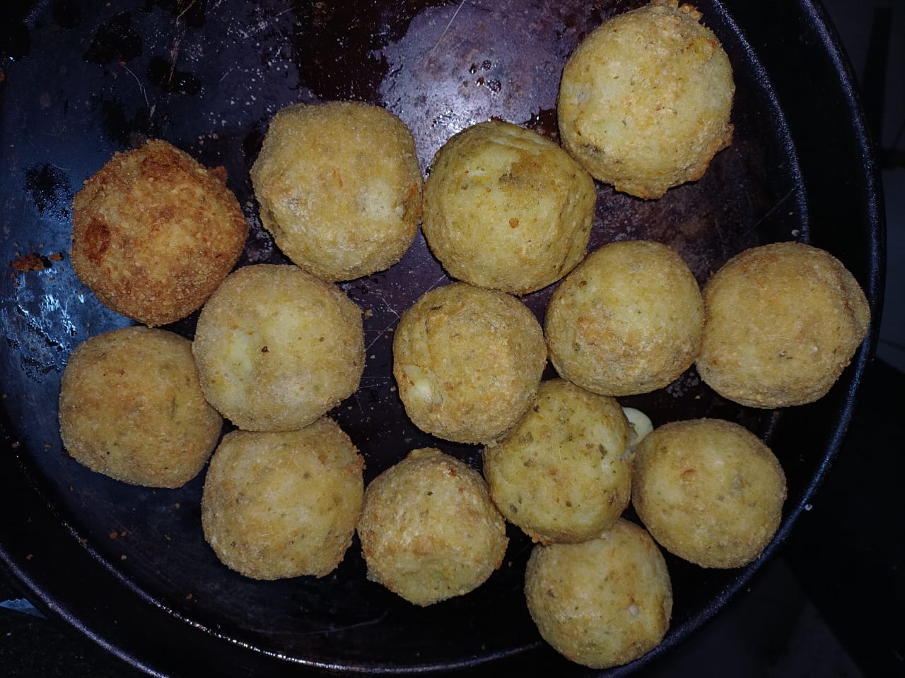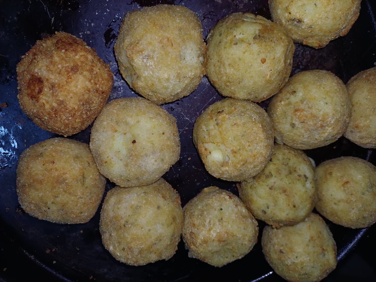 Deliciosas bombas de papa rellenas de queso y condimentos, fritas hasta lograr un exterior dorado y crocante, con un interior suave y cremoso. Un bocado irresistible, ideal como entrada o acompañamiento sabroso.