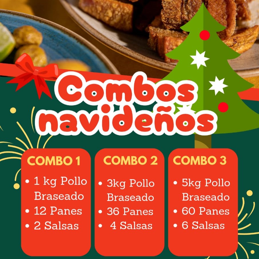Combos Fiestas a base de Pollo: pollo braseado, panes artesanales y dips de salsas varias. Ideales para compartir en navidad, año nuevo o en cualquier reunión.