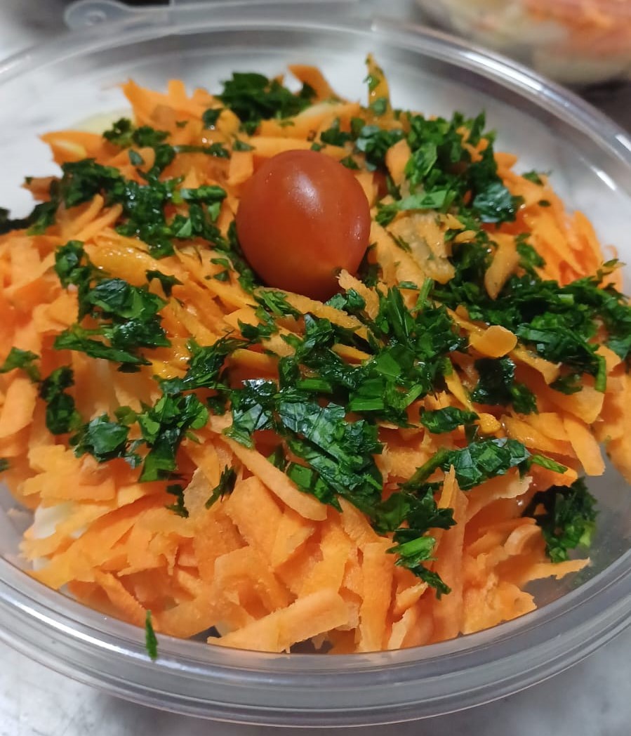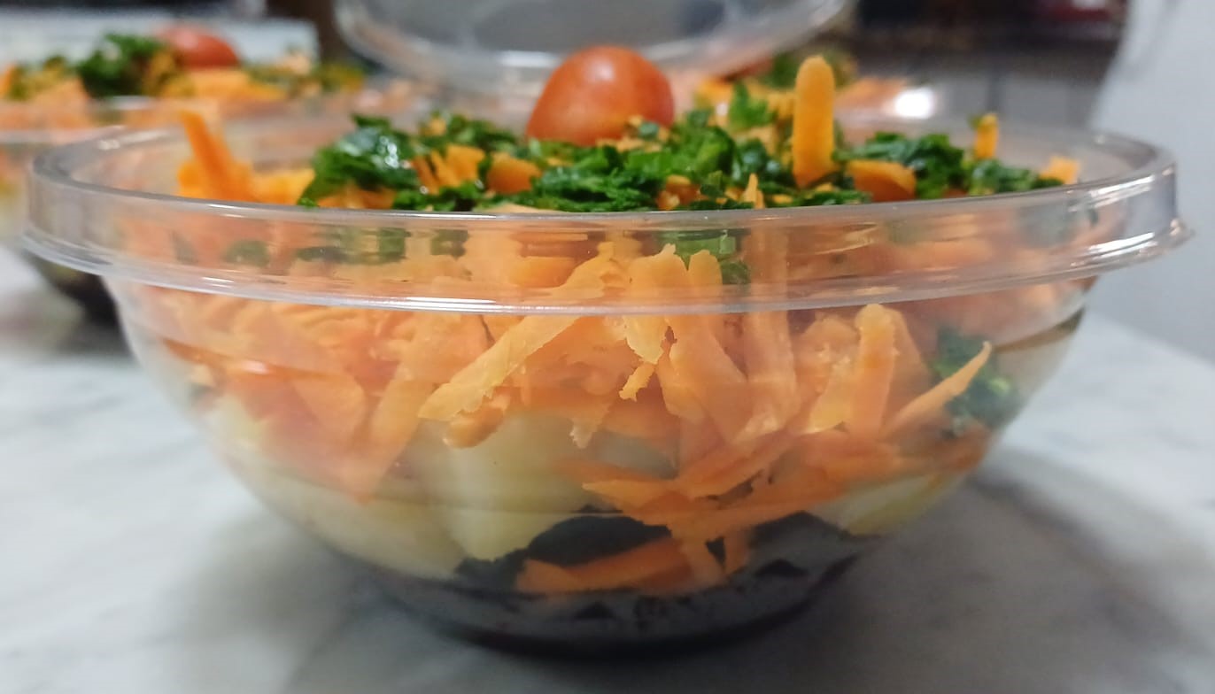 Ingredientes: Remolacha tierna y colorida combinada con papa suave, zanahoria fresca y perejil recién picado, junto a tomates cherry jugosos que aportan un toque vibrante y natural al plato.