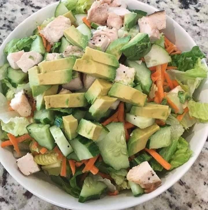 Ingredientes: Pollo grillé, Zanahoria, Pepinos, Lechuga y Palta.