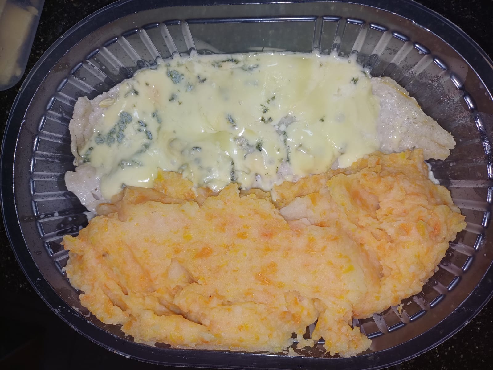 Merluza fresca y tierna, cocinada a la perfección y cubierta con una cremosa salsa de queso Roquefort que realza su sabor. Acompañada de un puré mixto de papa y calabaza, suave y reconfortante, este plato combina la delicadeza del pescado con el toque intenso del queso, creando una experiencia deliciosa y equilibrada.