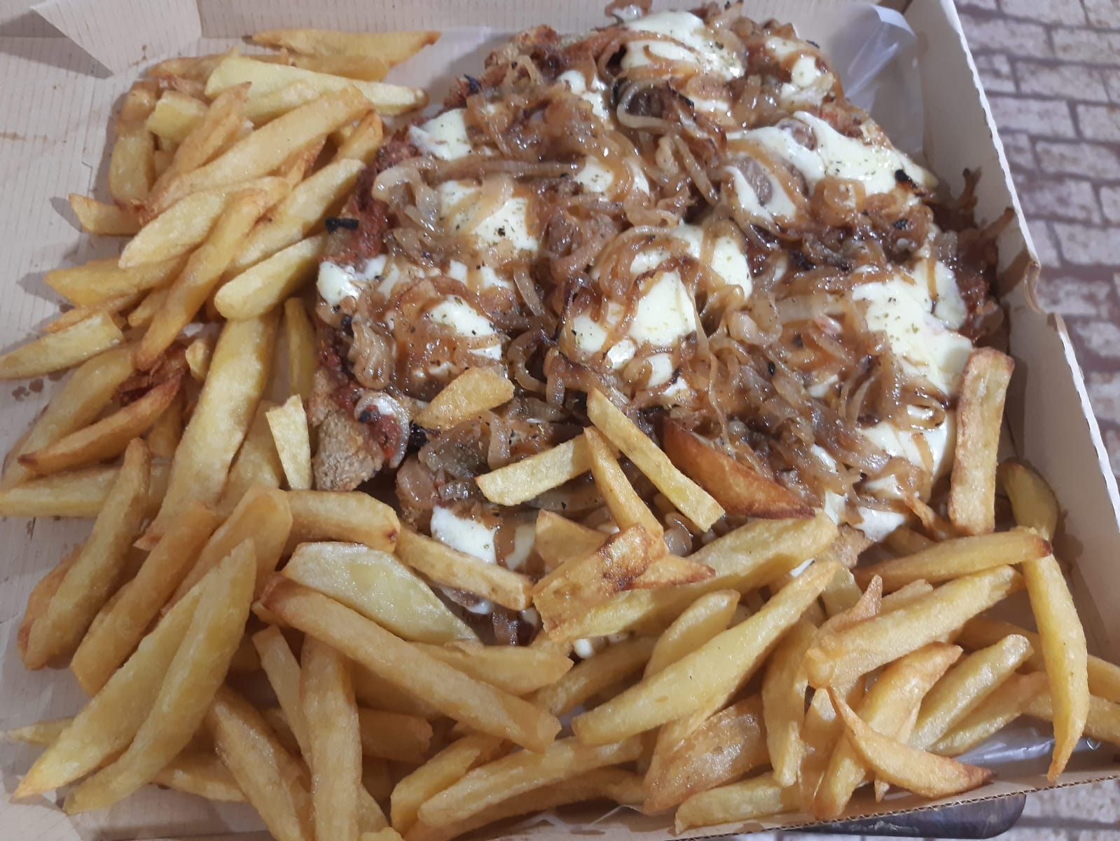 Milanesa de ternera XL, tierna y crocante, cubierta con abundante queso fundido, cebolla salteada y un toque de orégano al estilo fugazzeta. Acompañada de papas fritas doradas y crujientes. Una combinación irresistible para los amantes de los sabores clásicos con un toque porteño.