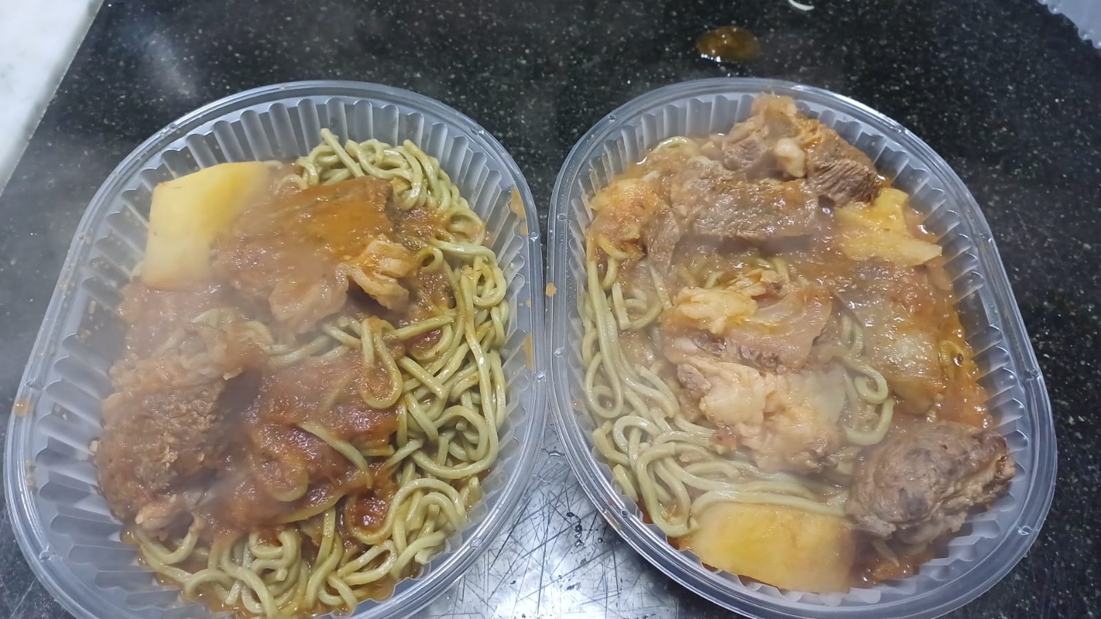 Tallarines frescos de espinaca, tiernos y llenos de color, acompañados de un estofado de carne jugosa y verduras cocidas lentamente. Un plato equilibrado, nutritivo y con todo el sabor casero que reconforta en cada bocado.