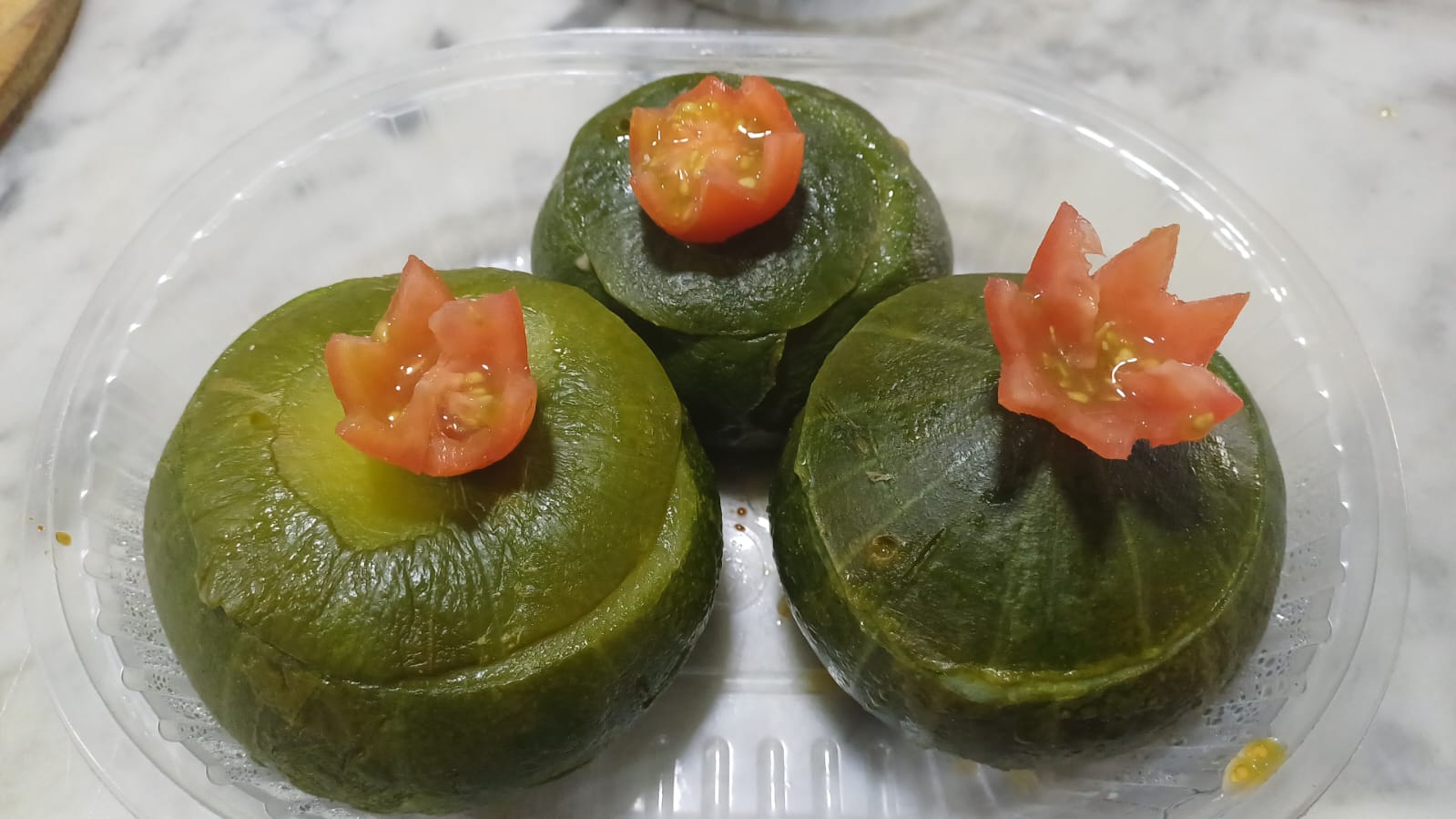 Zapallitos frescos cuidadosamente seleccionados y rellenos con arroz yamani cocido al punto justo, vegetales salteados que aportan textura y color, y una mezcla de especias naturales que realzan cada sabor. Completados con queso gratinado dorado y aromático, forman un plato nutritivo, casero y lleno del inconfundible sabor de Su Excelencia.